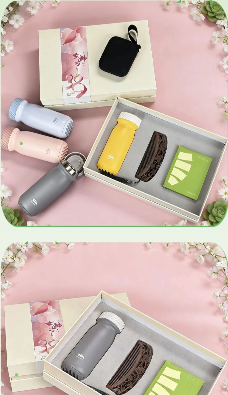 福禮掌柜綻禮·禮盒三八節(jié)女神節(jié)禮品蕉下保溫杯梳子U型枕套裝 禮品已成功加入PPT!