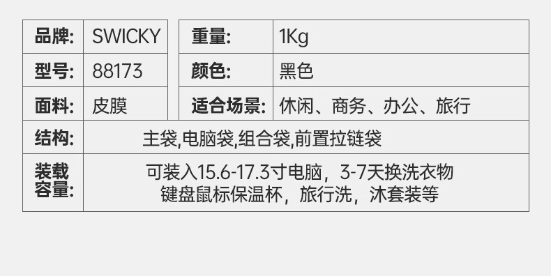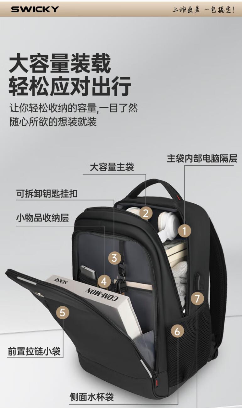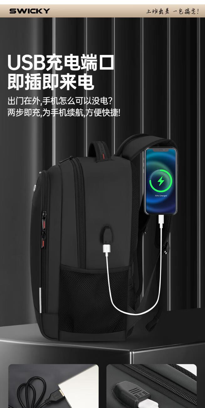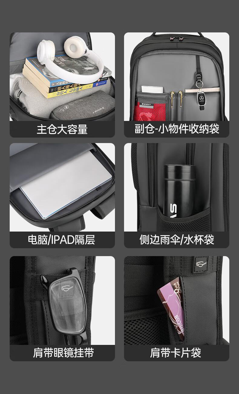 SWICKY瑞馳多功能休閑商務(wù)雙肩包88173黑色大號