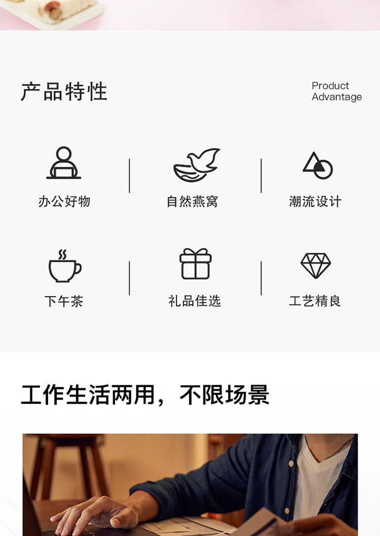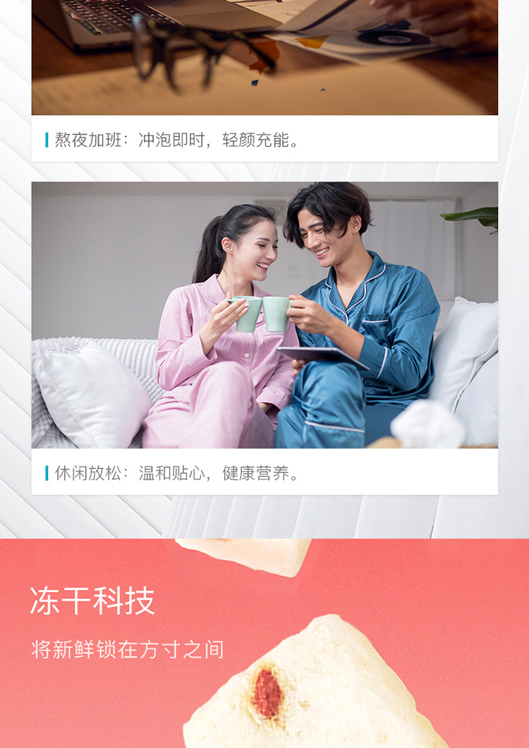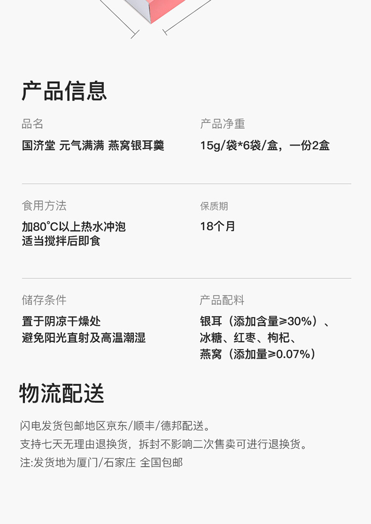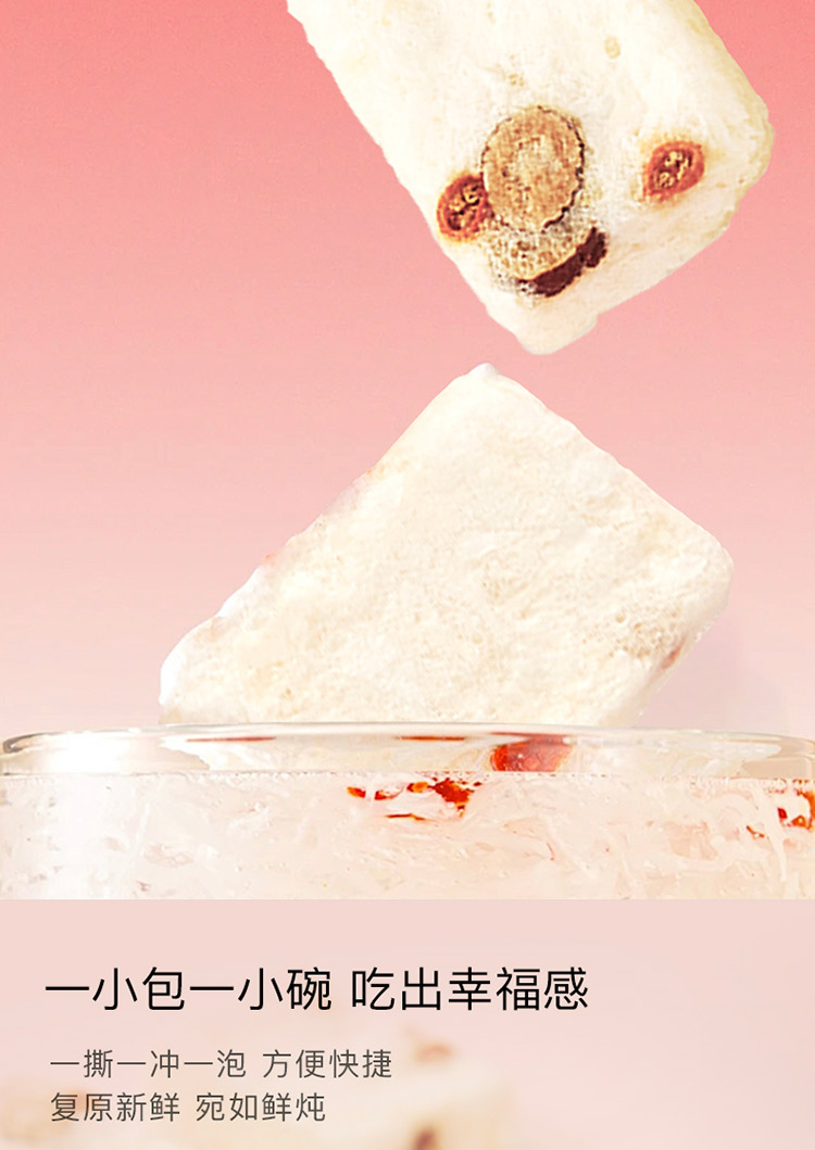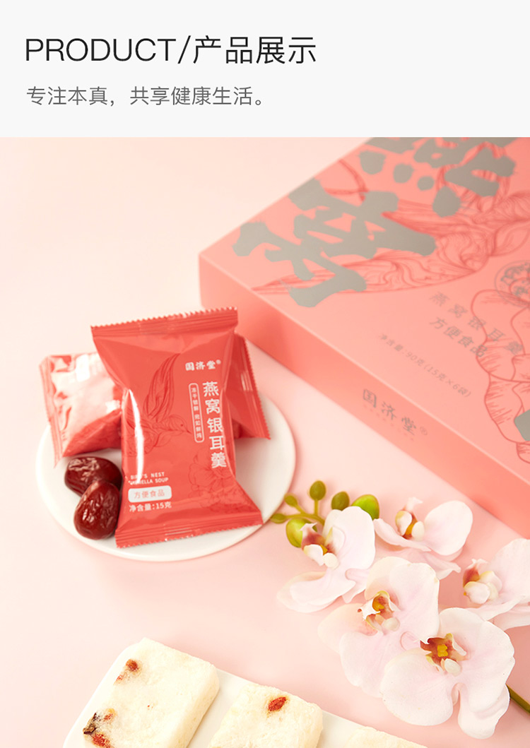 國(guó)濟(jì)堂自行開(kāi)發(fā)設(shè)計(jì)的年輕化、潮流化新產(chǎn)品——燕窩銀耳羹。隨著社會(huì)生活的快節(jié)奏發(fā)展,凍干產(chǎn)品的需求越來(lái)越多,本款采用暖粉+銀配色,更年輕更時(shí)尚。