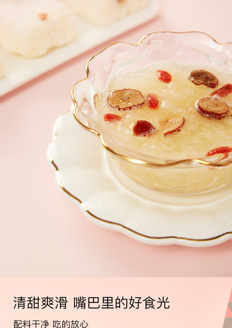 真材實(shí)料的搭配,銀耳、紅棗、枸杞等肉眼可見(jiàn)