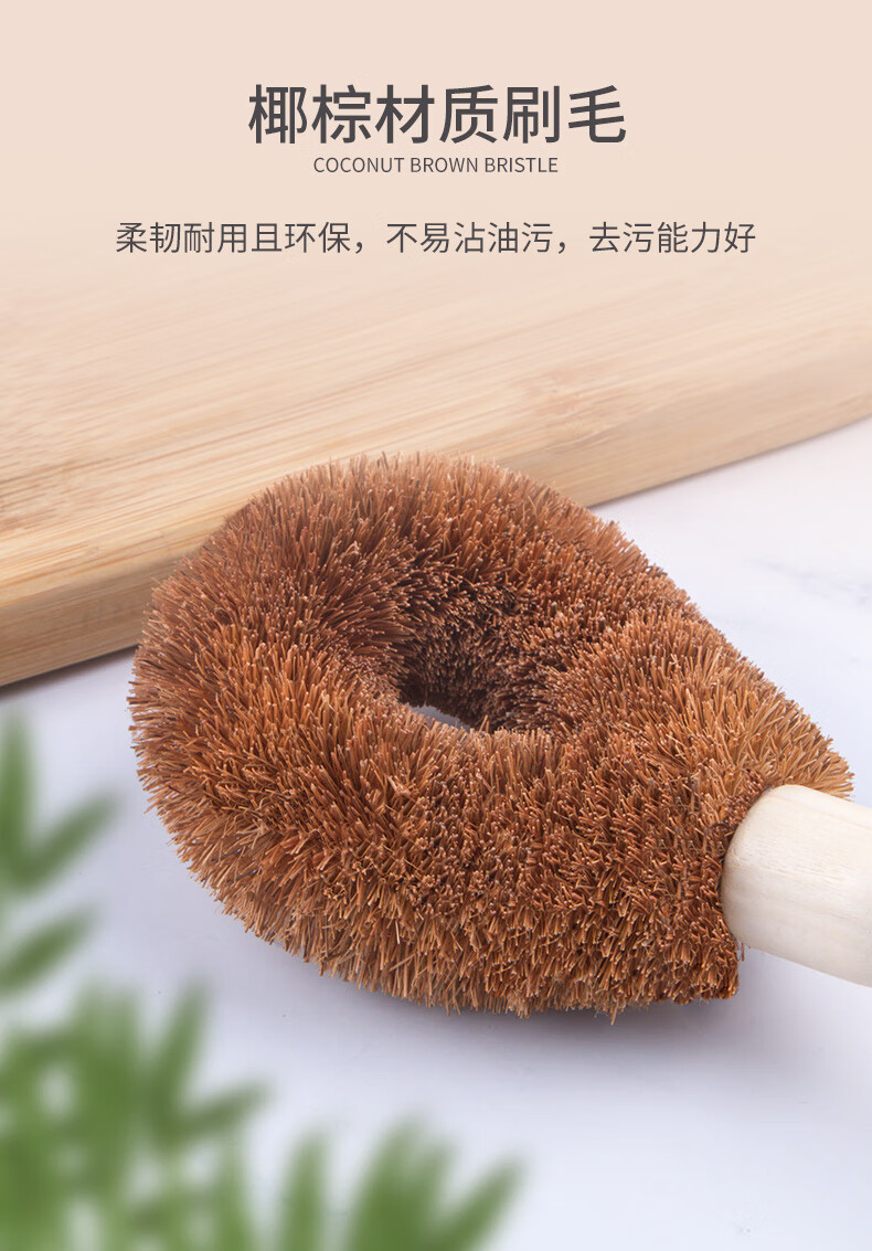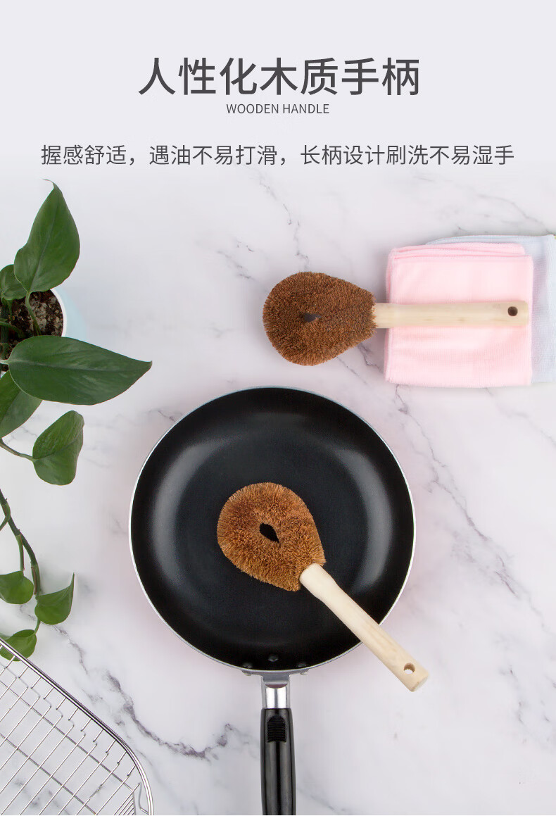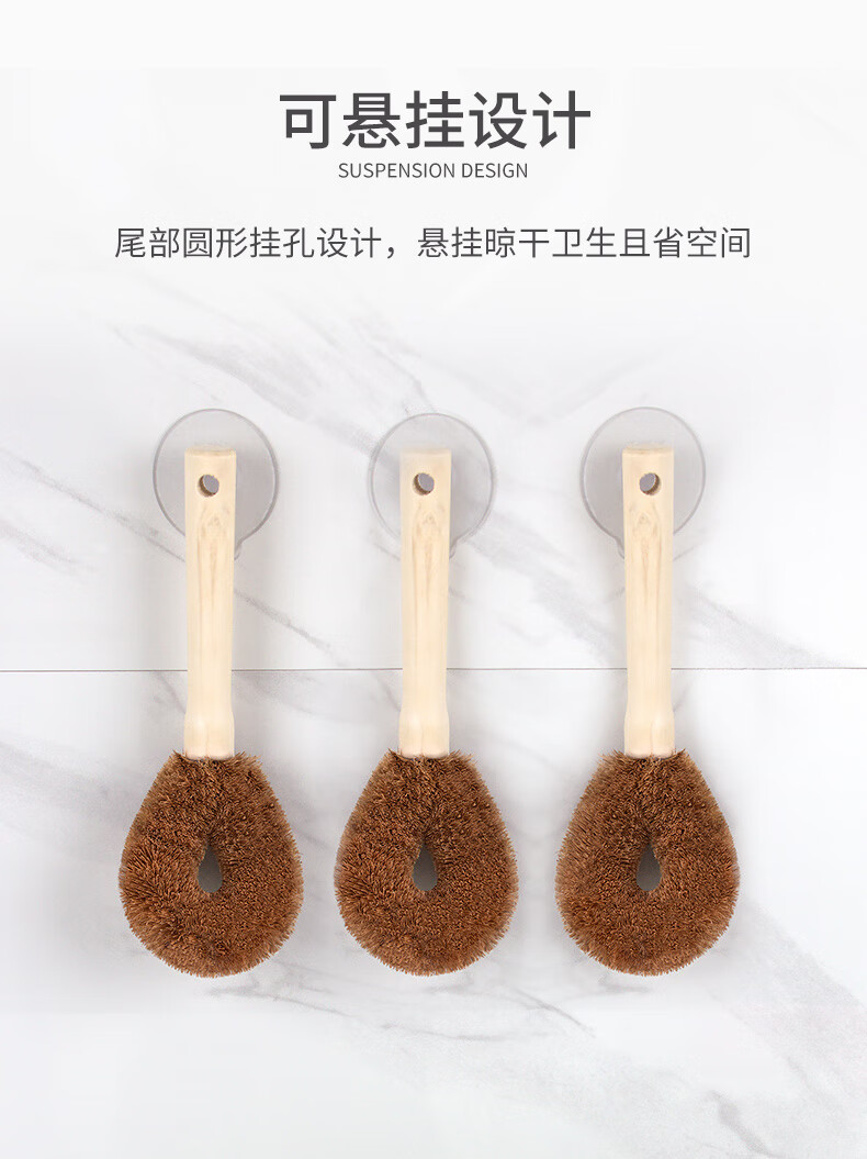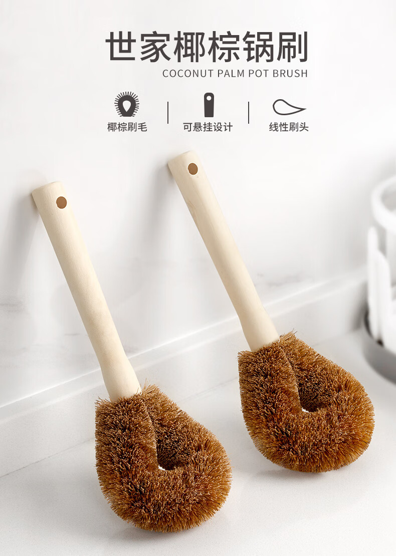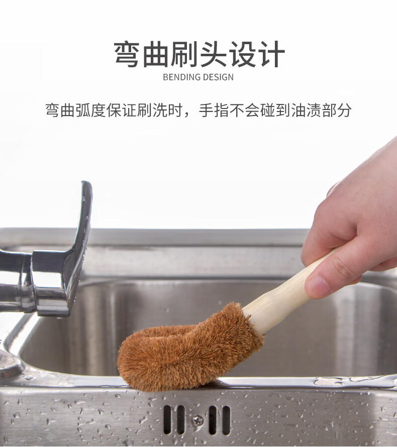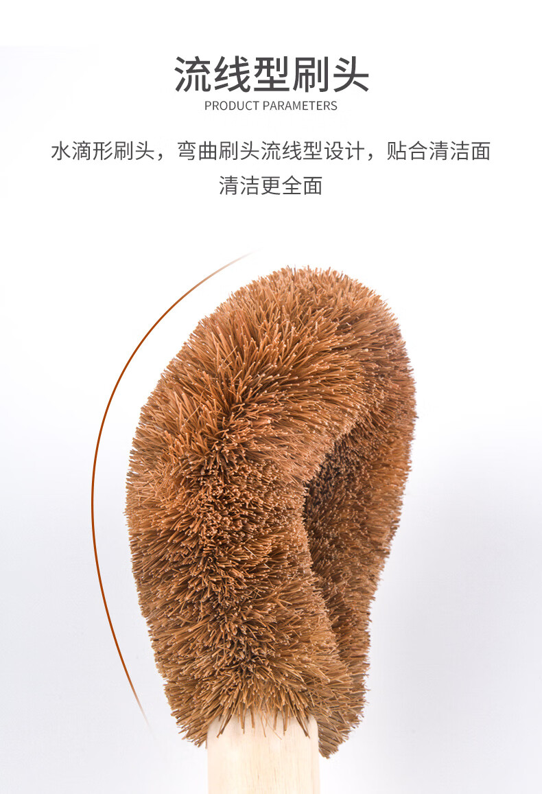 椰棕材質(zhì)刷毛 柔韌耐用且環(huán)保,不易沾油污,去污能力好 人性化木質(zhì)手柄 握感舒適,遇油不易打滑,長(zhǎng)柄設(shè)計(jì)刷洗不易濕手 彎曲刷頭設(shè)計(jì) 彎曲弧度保證刷洗時(shí),手指不會(huì)碰到油漬部分 流線型刷頭 水滴形刷頭,彎曲刷頭流線型設(shè)計(jì),貼合清潔面清潔更全面 可懸掛設(shè)計(jì) 尾部圓形掛孔設(shè)計(jì),懸掛晾干衛(wèi)生且省空間