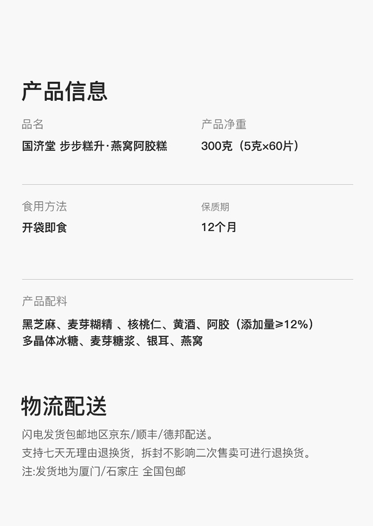 國濟堂步步糕升燕窩阿膠糕300g 國濟堂步步糕升燕窩阿膠糕300g
