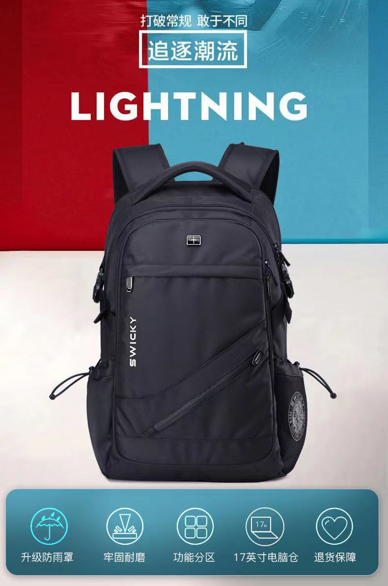 SWICKY瑞馳高中大學(xué)生書包81677AL黑色大號
