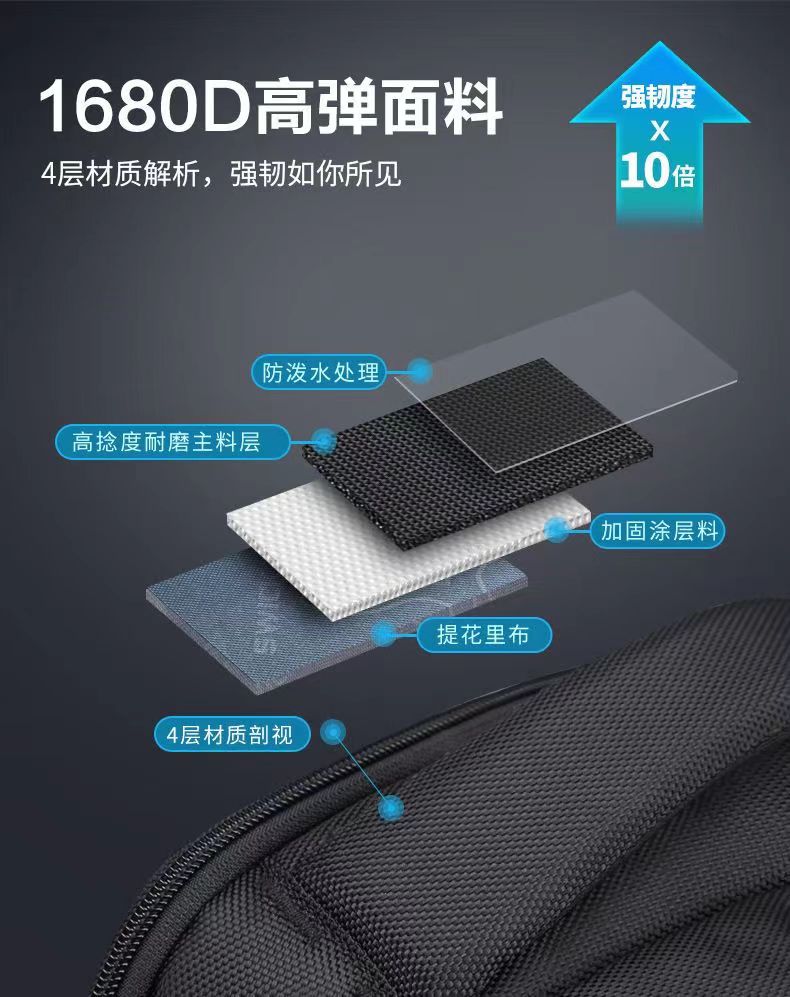 型 號:81677AL 尺 寸:470*320*180(MM) 材 質(zhì):織物 顏 色:黑色 重 量:0.9kg 2.采用1680D抗撕裂材料 防潑水; 3.超大容量設(shè)計可放15寸電腦; 4.主袋內(nèi)加厚電腦隔層; 5.彈力蜂窩背板、透氣、緩壓、減震