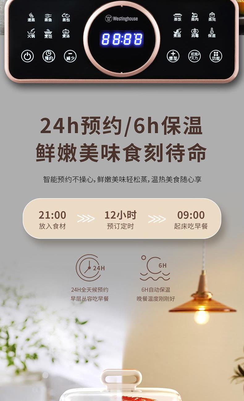 24h預(yù)約、6h自動保溫,鮮嫩美味時刻待命;