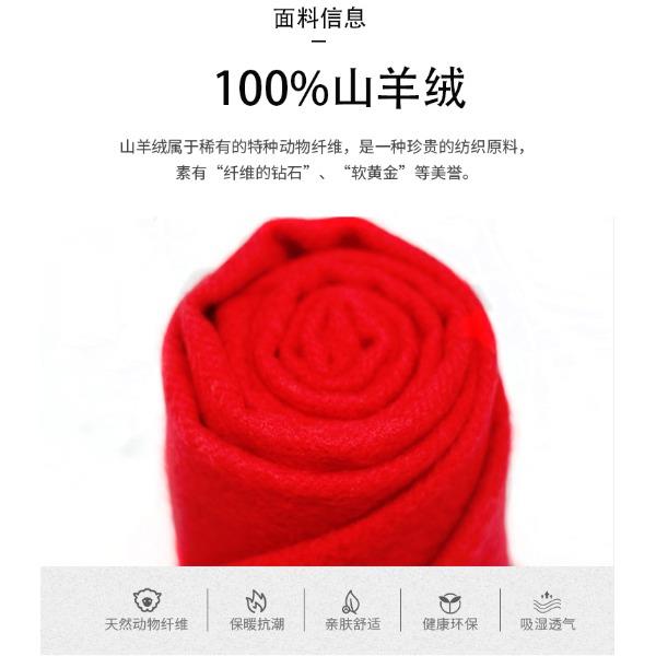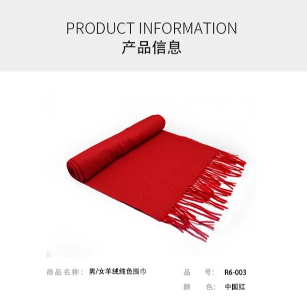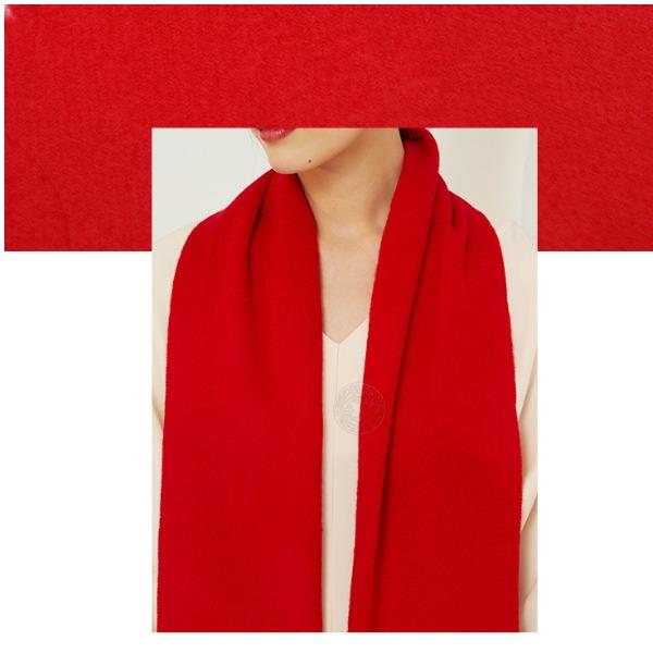 「純紅色」中國(guó)紅羊絨圍巾 尺寸:30×180cm 成分:山羊絨 卷邊:手工抽須