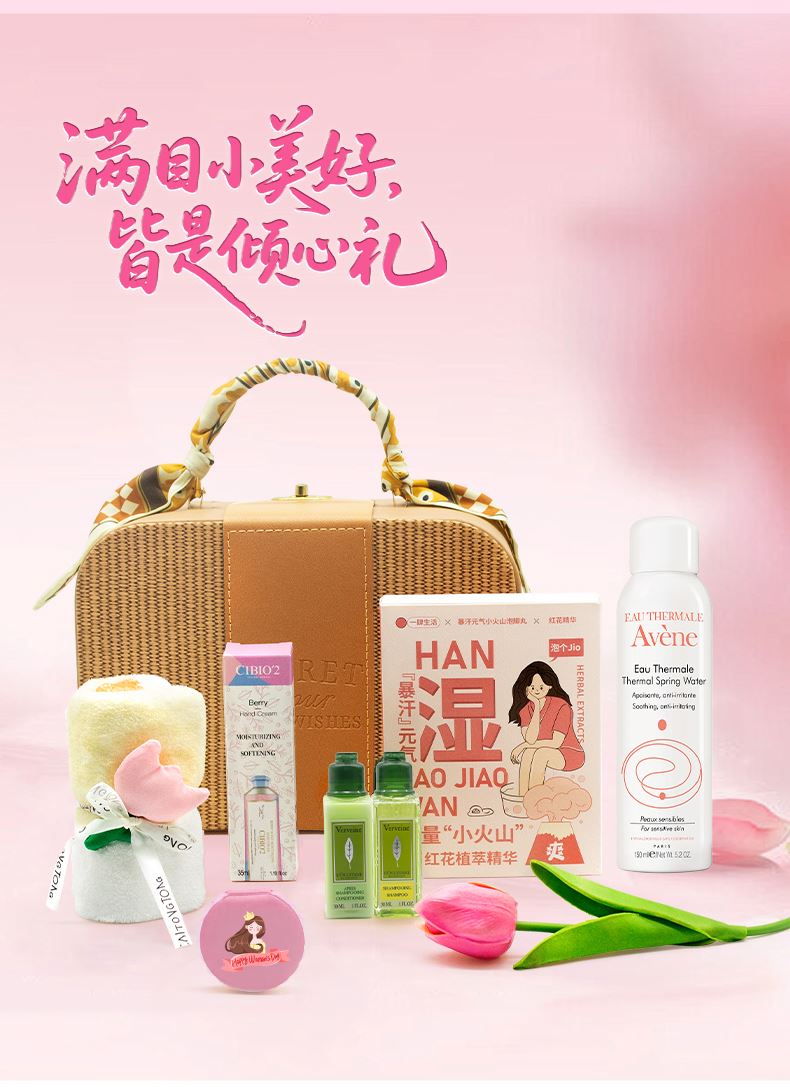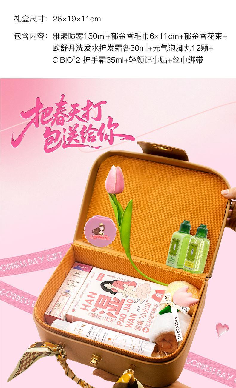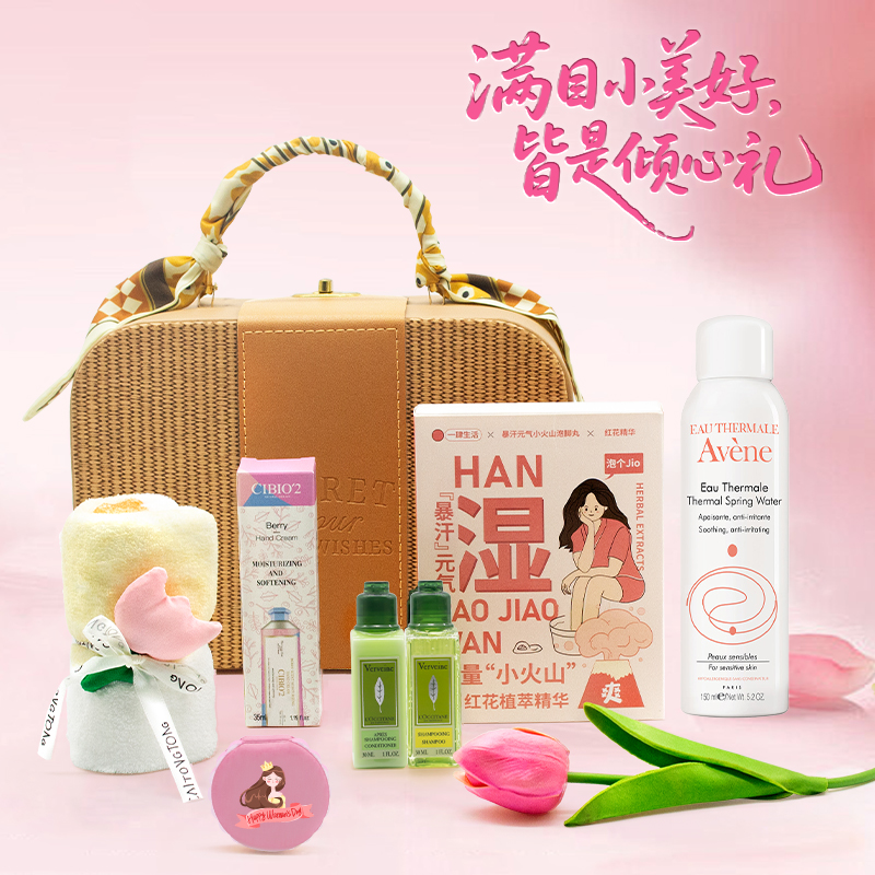 包裝尺寸:26*19*11cm 雅漾噴霧:150ml CIBIO'2護(hù)手霜:35ml 元?dú)馀菽_丸:12顆 輕顏記事貼 郁金香毛巾:6*11cm 歐舒丹洗發(fā)水護(hù)發(fā)素:各30ml 郁金香花束 絲巾綁帶(顏色隨機(jī))