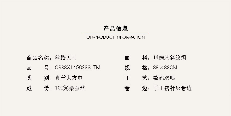 ITARORA 聯(lián)名中國(guó)絲綢博物館權(quán)威聯(lián)名絲路天馬真絲大方巾 馬年絲巾 中國(guó)風(fēng) 民族風(fēng) 旅行 戶外 日常四季通用節(jié)日禮贈(zèng)佳品 數(shù)碼雙噴 同花同色 規(guī)格: 88*88CM大方巾桑蠶絲斜紋綢 手工卷邊 禮盒包裝